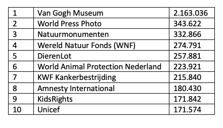 De complete Top 250 is te vinden op de site van Fundraiser Online.